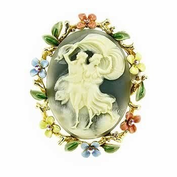 This hand painted brooch is so romantic! Surrounded by 10k gold filligree.